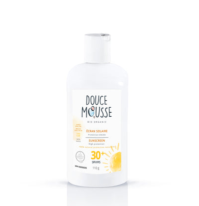 Tous les ingrédients de l’écran solaire Douce Mousse MD rencontrent les normes les plus sévères en matière de formulation naturelle et biologique. (sans pesticides, renouvelable et biodégradable) Ingrédient principaux:Huile de jojoba biologique: L’un des ingrédients préférés des peuples Aztèques, l’huile de jojoba est hydratante et humectante et convient aux peaux les plus sensibles. Beurre de karité biologique: Utilisé en Afrique depuis des millénaires, cet ingrédient est très hydratant en plus d’assouplir la peau. Huile de tournesol biologique du Québec: Riche en vitamine E, très hydratante et adoucissante. Huile de buriti: Directement de la forêt amazonienne du Brésil, très riche en caroténoïdes, antioxydant et photoprotecteur. Prévient des dommages du soleil et donne une jolie couleur beige-orangée à notre lotion solaire. L’oxyde de zinc: Ingrédient naturel très efficace pour protéger du soleil. Devient transparent à l’application lorsque ajouté dans une formulation de qualité.