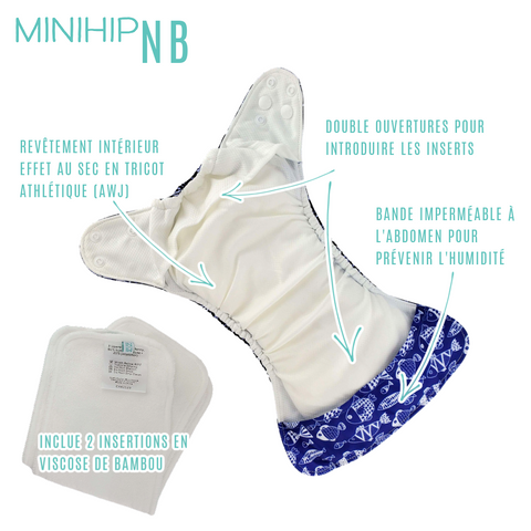 Minihip vous offre une collection de couches lavables au design superbe et aux imprimés originaux. Faciles d'ajustement, elles s'ajustent à la physionomie de votre enfant. Leur coupe étroite au niveau de l'entre-jambe est à la fois confortable et facilite la motricité de votre enfant. Les deux ouvertures de la poche permettent une introduction facile des insertions absorbantes. L'intérieur de la couche en tricot athlétique est à la fois léger, respirant et procure un effet au sec à votre enfant. Deux insertions absorbantes sont comprises dans chaque couche. Les couches Minihip ont tout pour vous plaire !